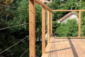 Vous êtes ici : Accueil1 / Menuiserie – Terrasses en bois, bardage, carport Nantes Pornic2 / CBT 44 Terrasse bois Garde Corps poteaux Iroko fils Inox exotiques Nantes...